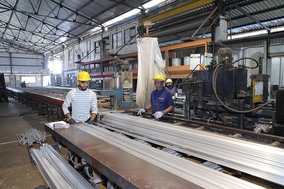 Skilled workers operate advanced extrusion and anodizing machinery, ensuring precision-engineered aluminum profiles for industrial applications.